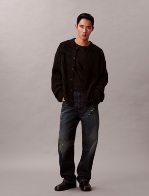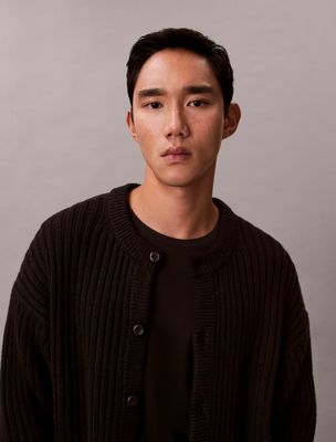 Cotton Blend Ribbed Relaxed Cardigan