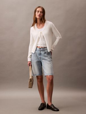 Cotton Blend Tie Front Cardigan