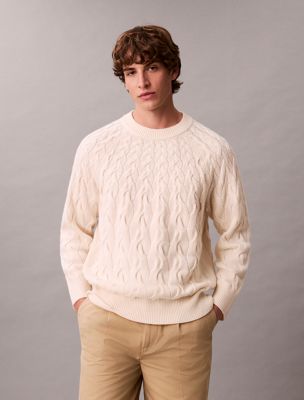 • intricate cable knit in a lambswool blend