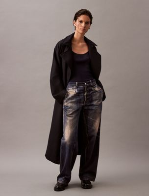 Cinched at the waist with a belt, this trench coat is a timeless layering staple. Crafted from a wool blend for a weighted, warm-handed feel. Designed with slip pockets at the sides and a single vent at the back.